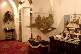 Im Krippenmuseum gibt es mehrere bewegliche Exponate. Wenn wir sie zu den „gewöhnlichen“ statischen zuzählen, bekommen wir die Zahl von fünfzig Krippen. Alle hölzerne und süße Christkinder, manche sogar aus Brot, umgeben von Josephs, Marias und Eseln, haben einen großen historischen Wert. Die Krippen sind bis hundertfünfzig Jahre alt; das älteste Exponat kommt aus dem 18. Jahrhundert. Da ist auch das Christkind in einer ziemlich kompromitierenden Situation – während der Beschneidung. Wir können hier auch einen Rabiner sehen.